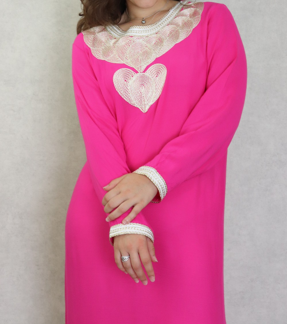 Cette robe manches longues avec de jolies broderies en motifs cœur sur le devant pour un effet stylé. De plus, vous disposez d'un large choix de couleurs, optez donc pour la couleur que vous désirez !