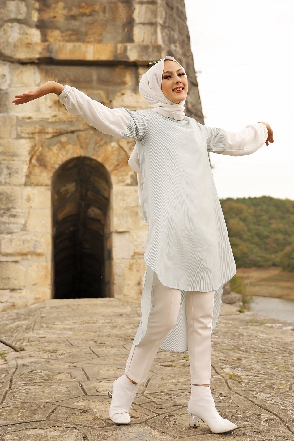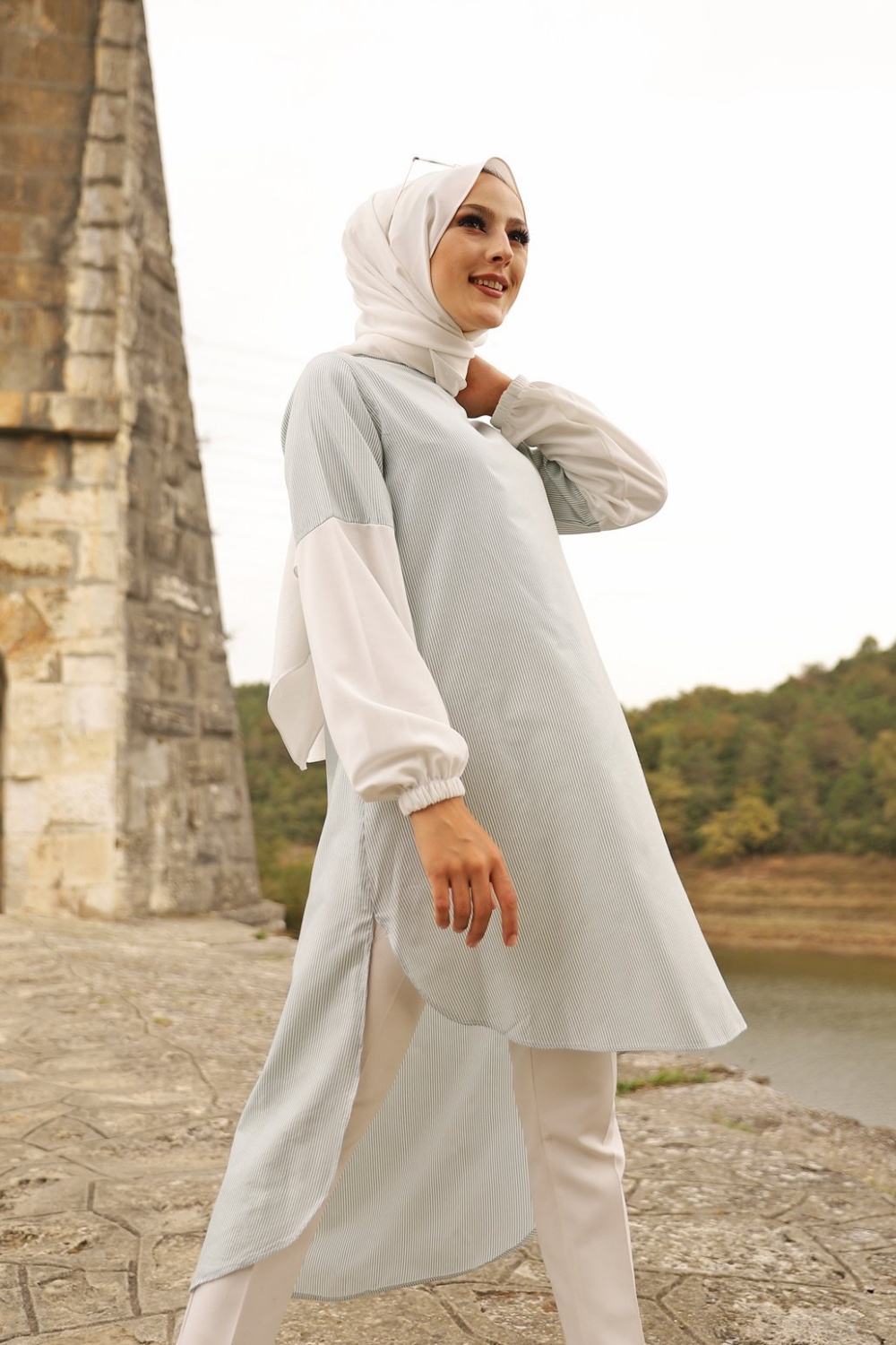 Tunique a rayures pour femme (Tenue pour Hijab) - Couleur menthe