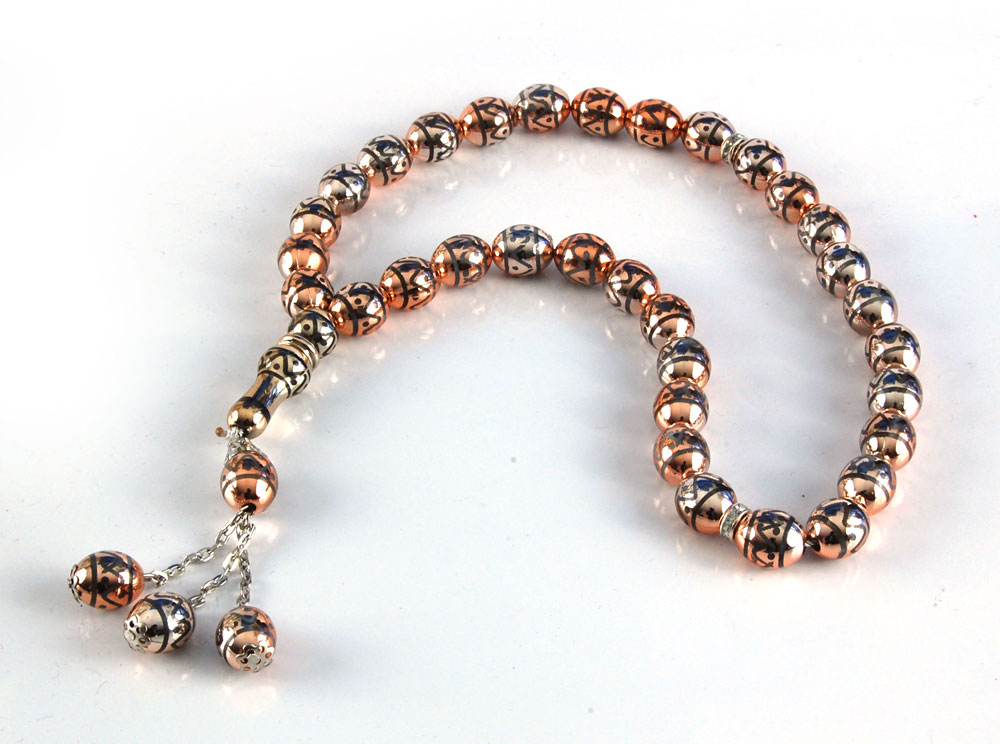 Chapelet "Sebha" dorée Avec Motif noir-gris ultra-résistant (33 grains)