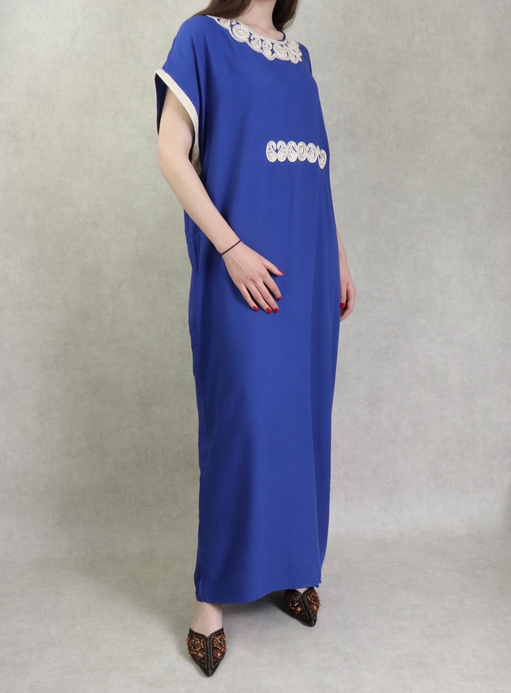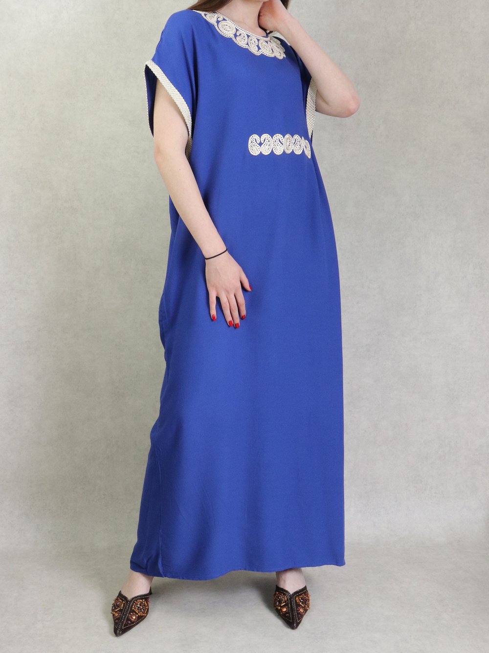 Robe Orientale élégante manches courtes tissu doux avec broderies pour femme - Couleur Bleu roi Vetement & Accessoire