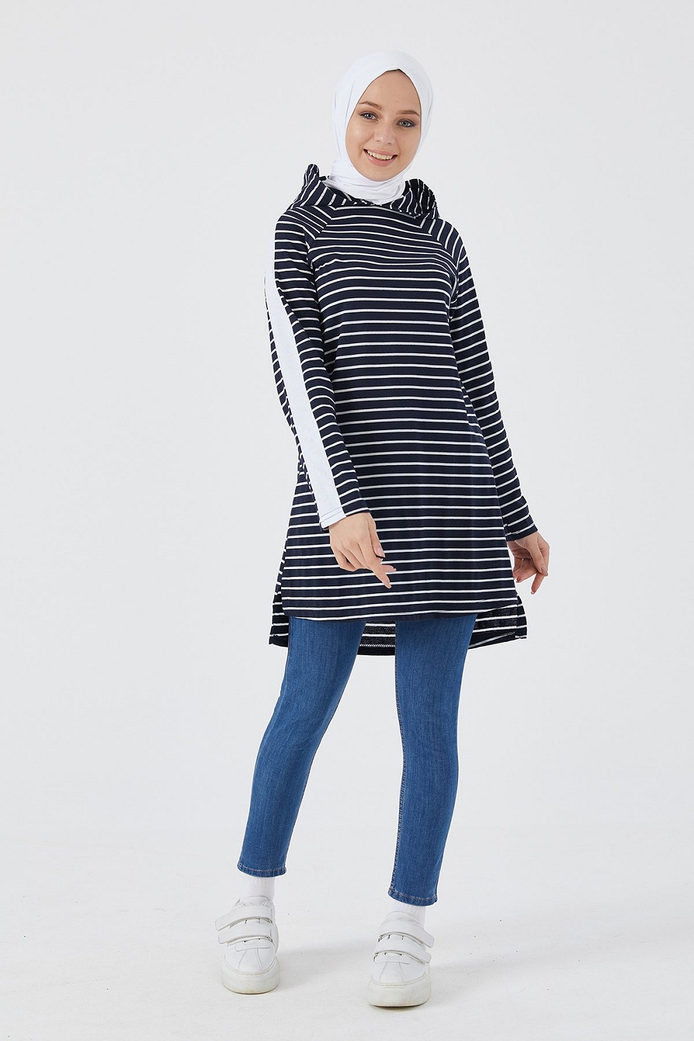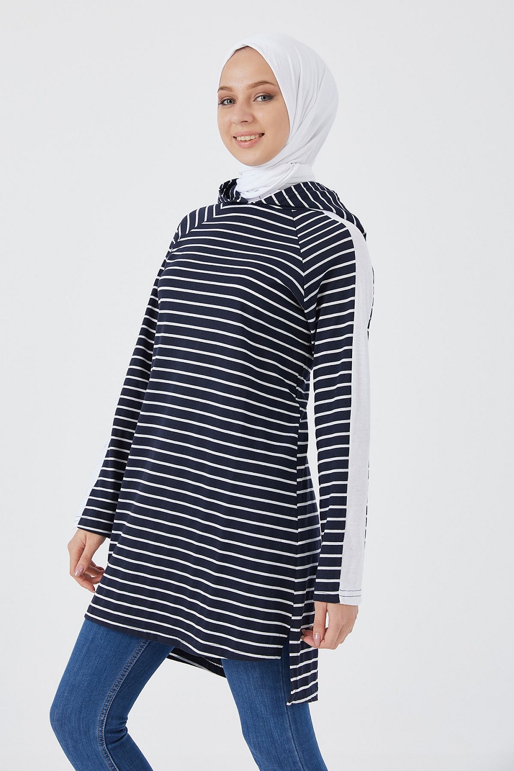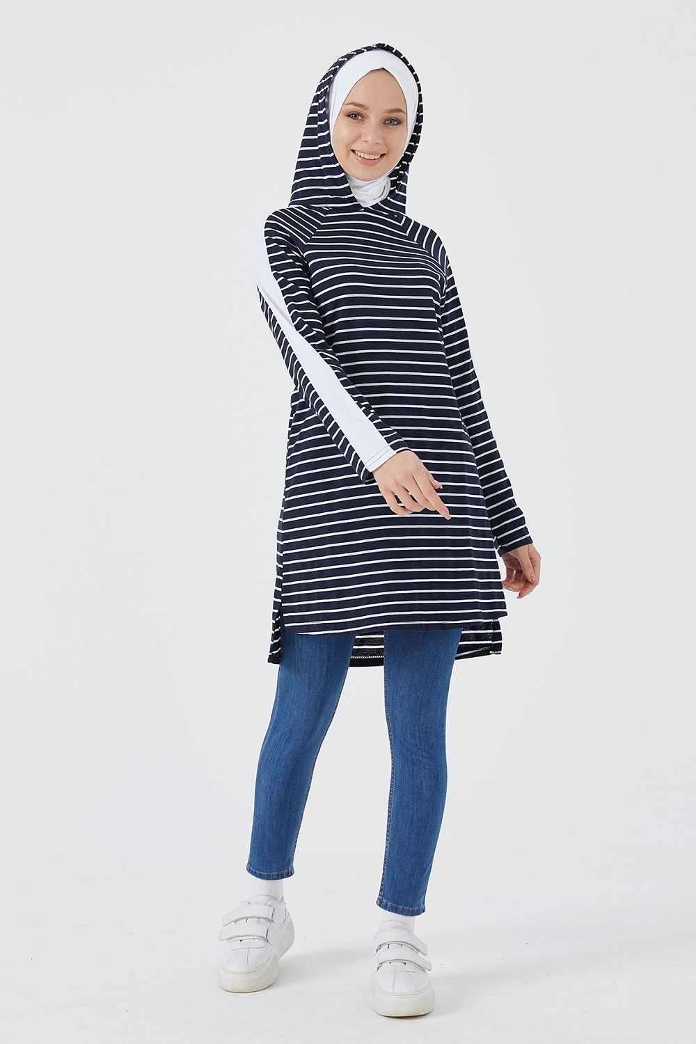 Tunique longue à rayures (Vetement femme voilée) - Couleur noir et bleu - REF. 35289 (16.90 €)