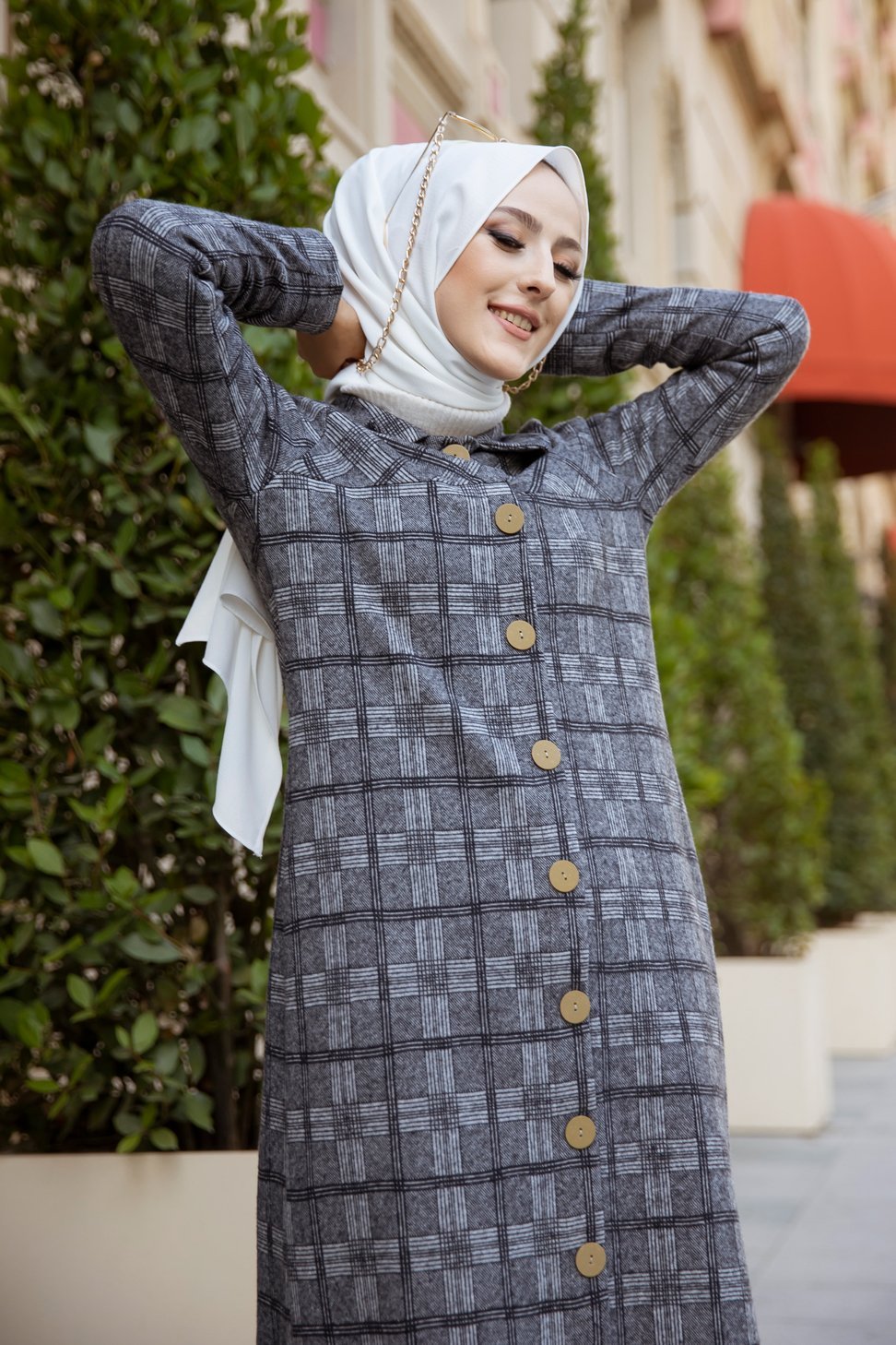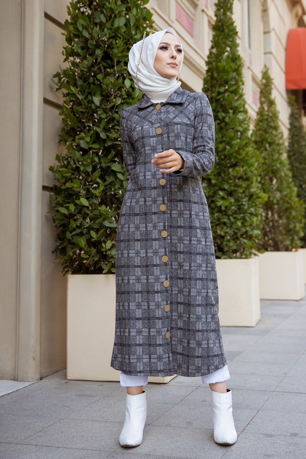 Robe-Veste longue à gros boutons - Couleur gris Vetement & Accessoire