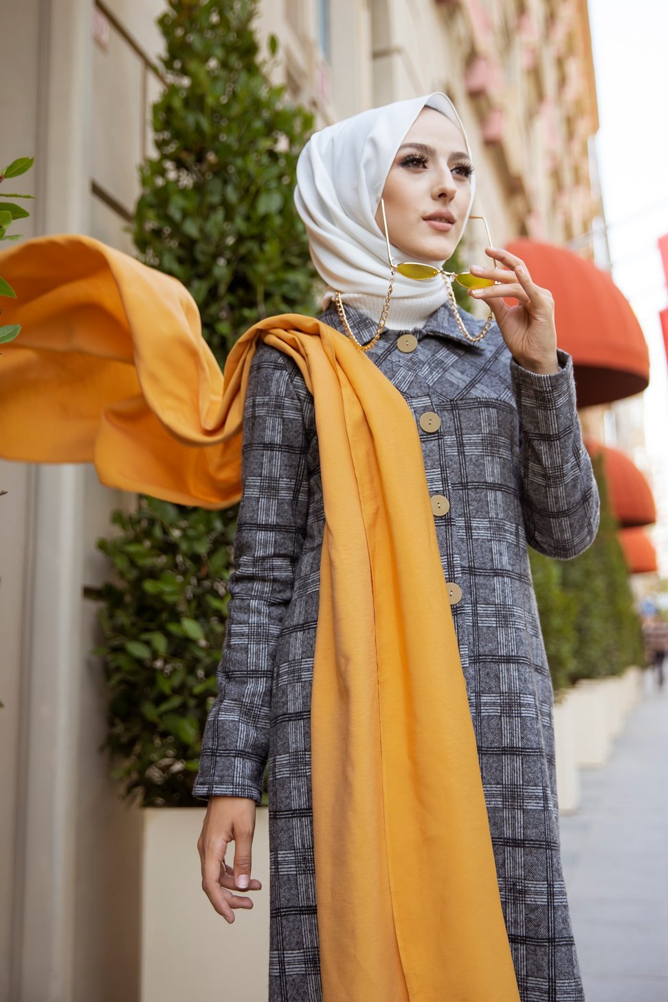 Djellaba moderne à capuche pour femme (Mode islamique) - Couleur gris - REF. 36235 (28.00 €)
