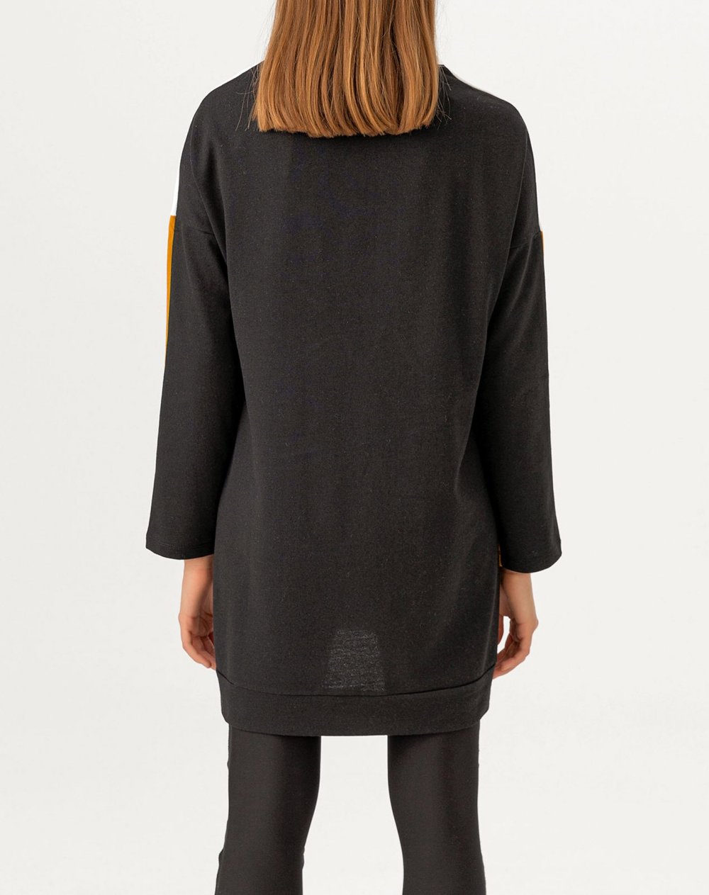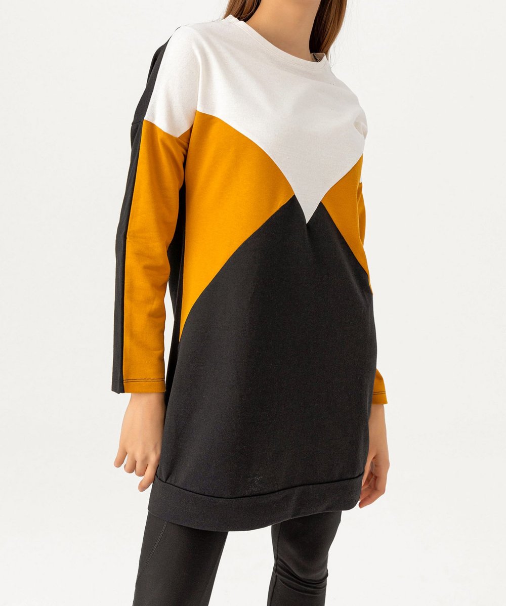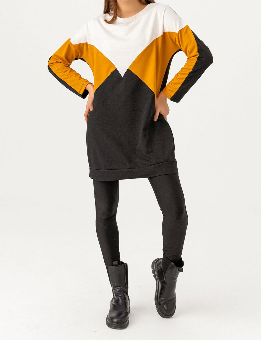 Tunique originale pour femme - Sweat-shirt tricolore - Couleur blanc noir et moutarde Vetement & Accessoire