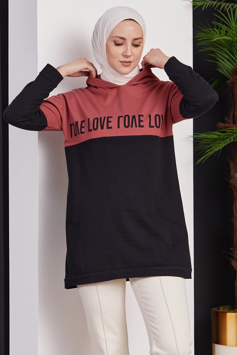 Tunique avec capuche pour femme (Sweat-shirt moderne avec inscription Love) - Couleur vieux rose Vetement & Accessoire