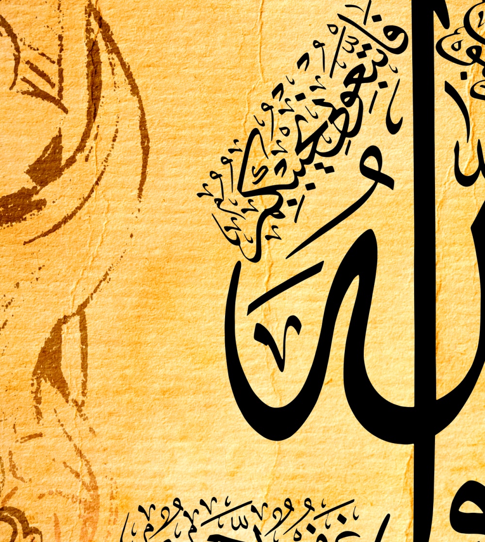 Tableau avec la calligraphie artistique du verset coranique : "Dis: «Si vous aimez vraiment Allah, suivez-moi, Allah vous aimera alors et vous pardonnera vos péchés. Allah est Pardonneur et Miséricordieux." Al-'Imran - v31.
