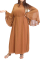 Très belle robe style oriental confectionnée avec un tissu épais (non transparent), fluide et doux (majoritairement coton). Le double avantage de ce modèle est d'être confortable et élégant à la fois.