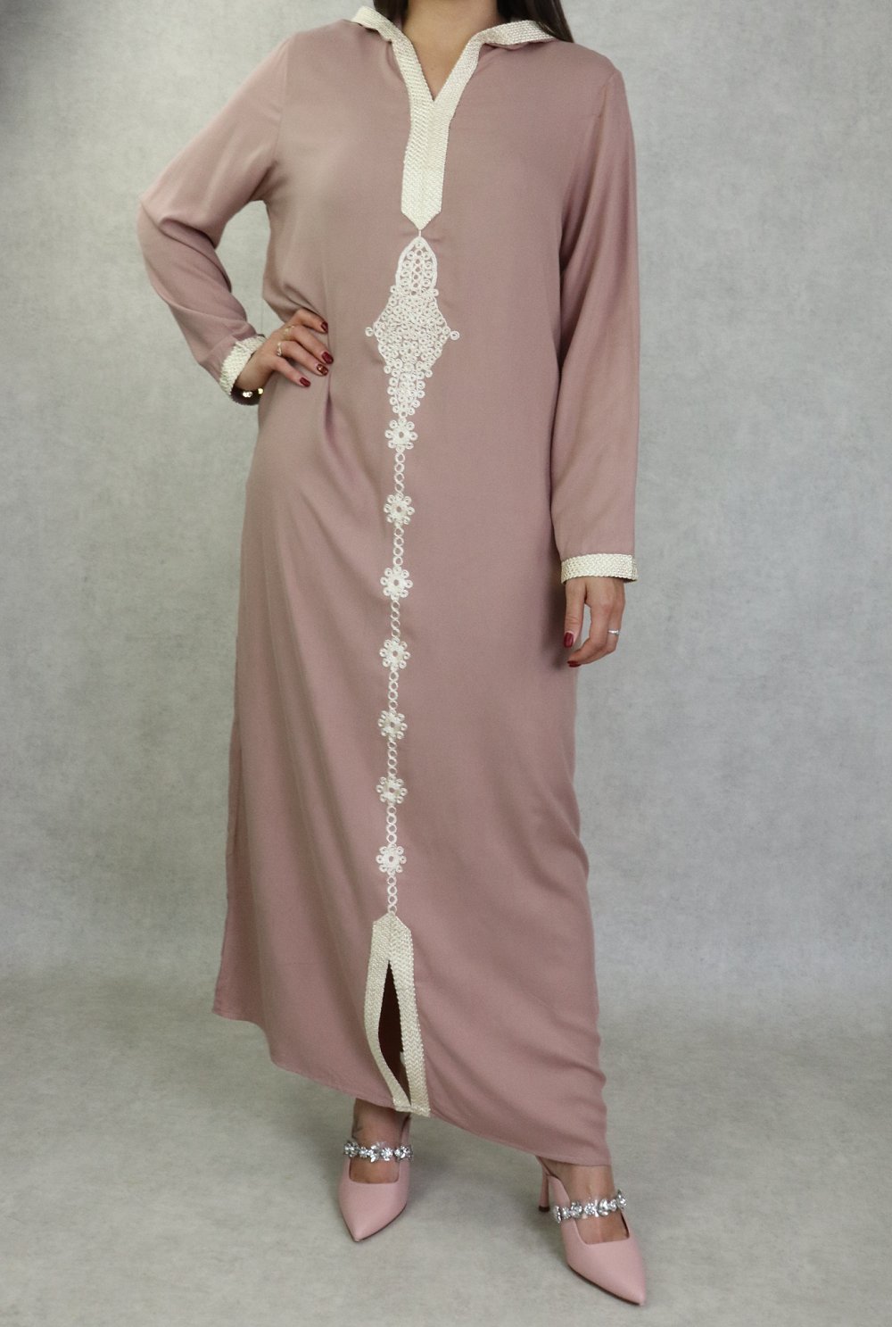 Djellaba avec broderies sur le devant, sur les poignets ainsi que le contour de la capuche. Deux poches latérales pratiques pour ranger vos effets personnels.
