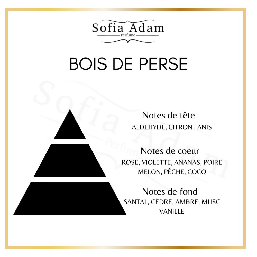 Ce parfum, aux notes à la fois gourmandes et chaleureuses de cassis, exhale sur un fond de senteur magique où le bois de cashmere, à la douceur vanillée et au sillage chaleureux et boisé, côtoie l’ambre, le musc et la vanille. La gourmandise de la fève tonka développe un cœur voluptueux où la violette s’exprime, exaltée par des notes de citron, bergamote et orange. Un volupté assurée.