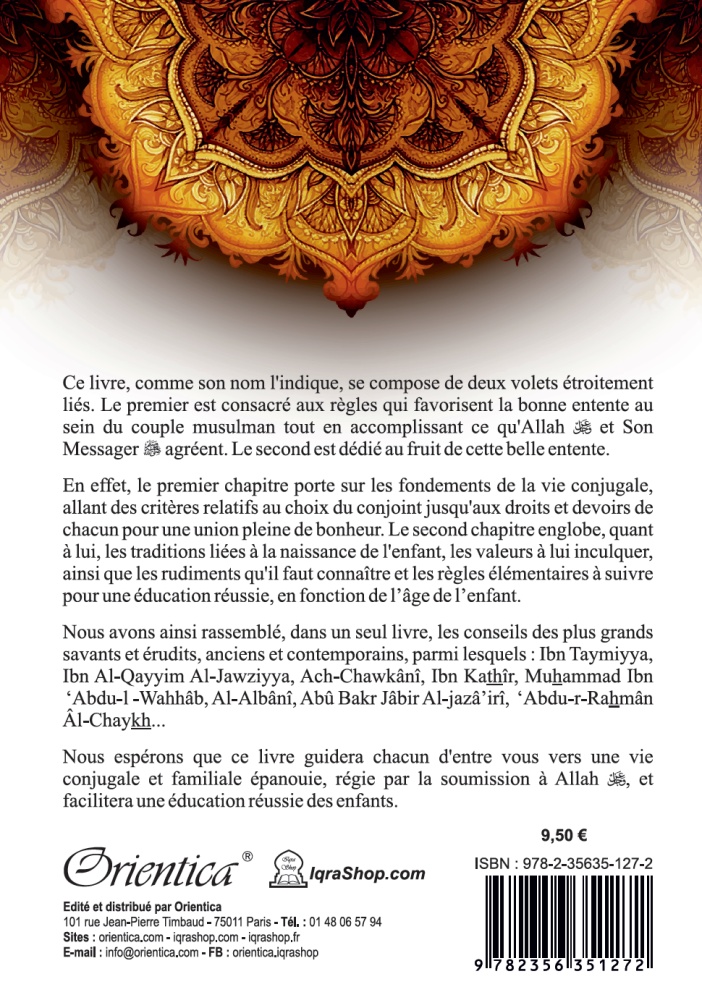 Ce livre se compose de deux volets étroitement liés : le premier, est consacré aux conditions et recommandations qui favorisent la bonne entente au sein du couple musulman et le second évoque les fruits de cette entente.