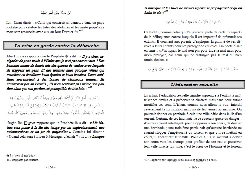 Les hadiths et versets coraniques sont cités en langue arabe vocalisée.
