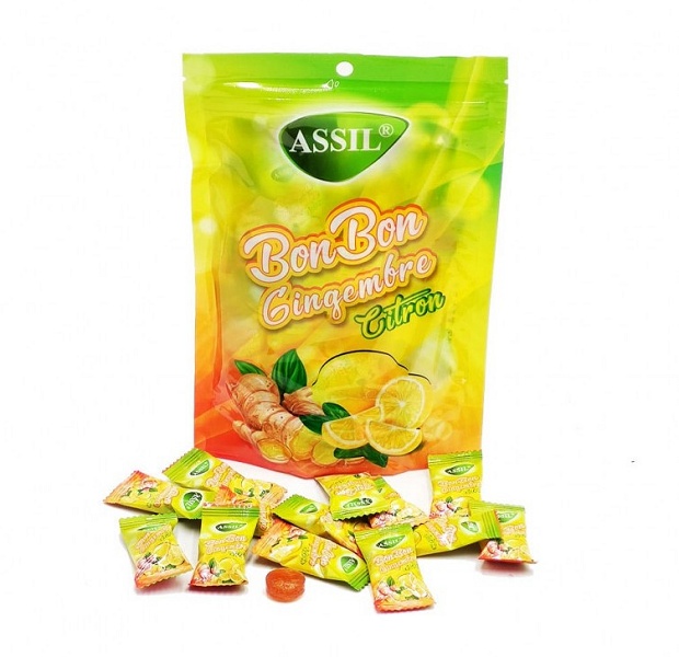 Sachet de bonbons gingembre citron de 125 gr. Fabriqué à base de composants Halal. Sans gluten, 0% de matière grasse.