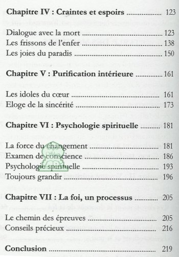 C'est tout l'intérêt de ce livre, unique en son genre. Analysant les cause de la baisse de foi qui perturbe le croyant dans son cheminement spirituel, l'auteur nous livre 1001 conseils pratiques et sages permettant de retrouver cete preté intérieure tant désirée.
