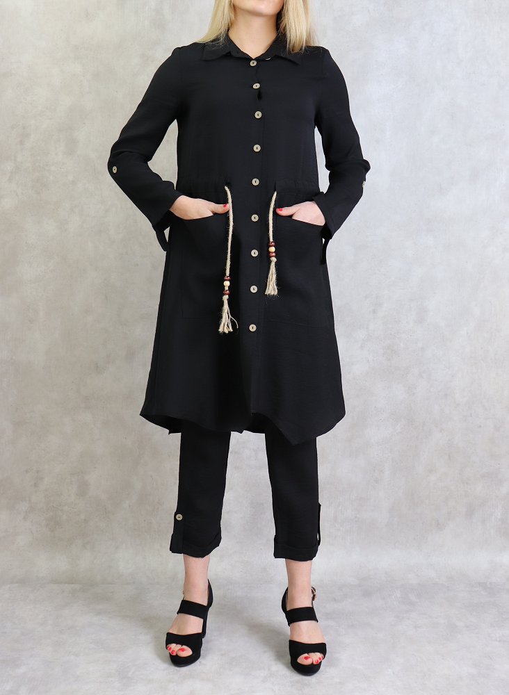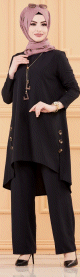 Ensemble casual moderne noir : Tunique boutonnée - chemise longue et son pantalon - Vêtement Hijab ample pour femme - REF. 36663 (35.00 €)