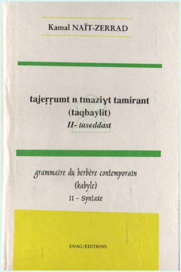 Profitez de cette offre de réduction : "Grammaire du berbère contemporain (Kabyle) - Tome 2 - Syntaxe - Tajerrumt n tmaziyt tamirant (taqbaylit) - II - taseddast" à prix promotionnel de 7.50 € au lieu de 9.00 € ! Retrouvez toujours les meilleurs offres et des centaines de réductions...