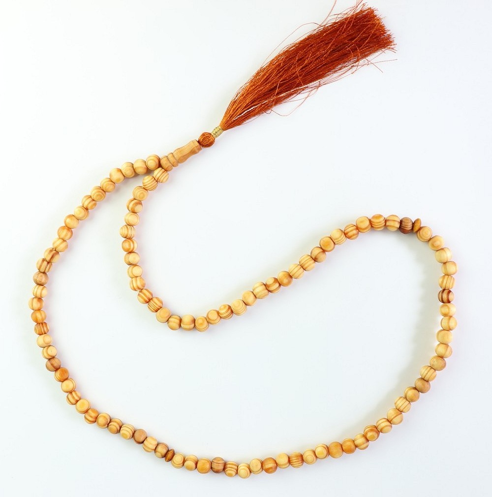 Les 99 perles sont en bois d'olivier véritable, de forme ronde de 8mm de diamètre.