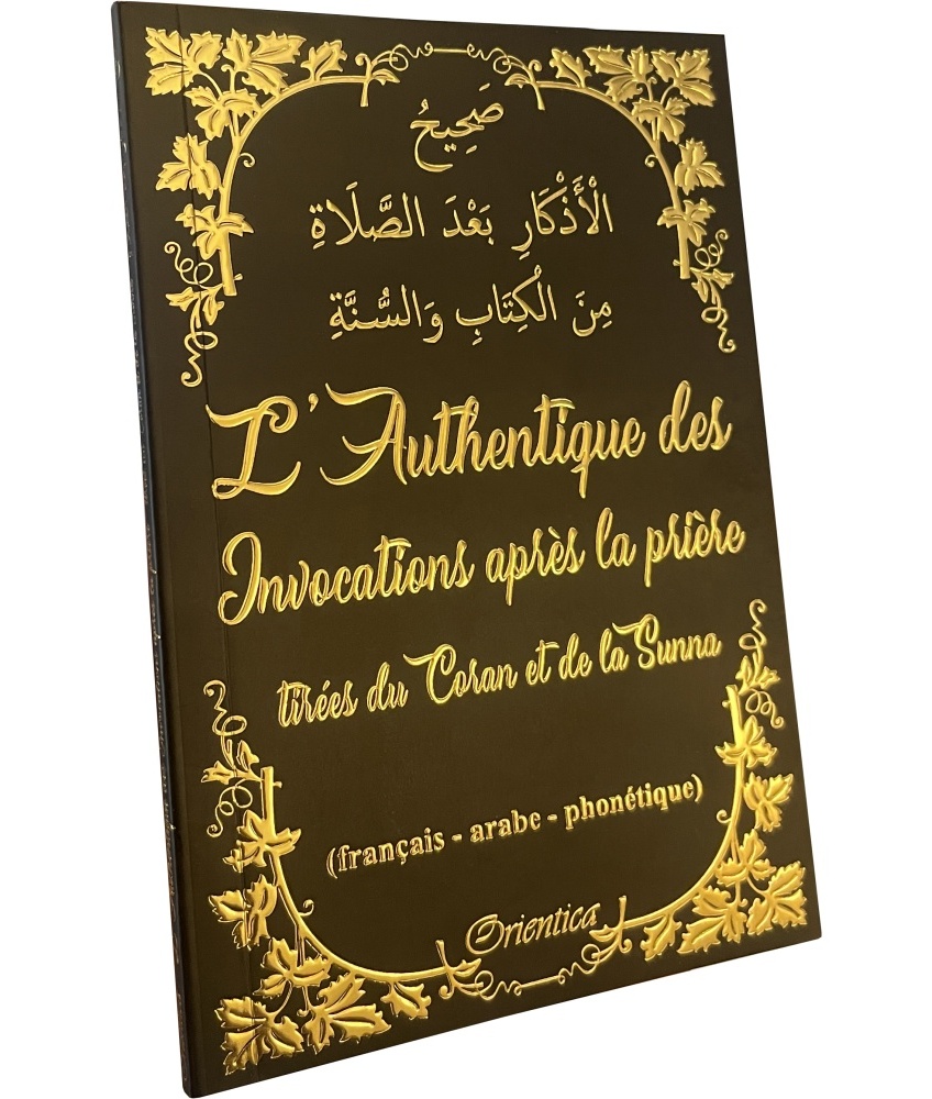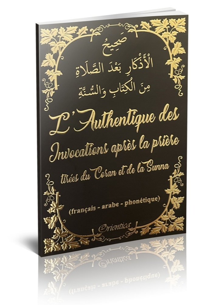 L'Authentique des Invocations après la prière tirées du Coran et de la Sunna (Sahîh Al-Adhkâr Ba‘da As-Salât mina-l-Kitâb wa-s-Sunna صَحِيحُ الْأَذْكَارِ بَعْدَ الصَّلَاةِ مِنَ الْكِتَابِ وَالسُّنَّةِ) en français - arabe - phonétique. Couverture noire dorée.