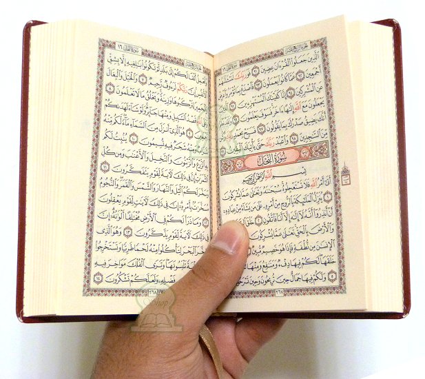 Le Saint Coran de poche en langue arabe uniquement avec couverture flexible rouge bordeaux. Très pratique pour emporter avec soi partout afin de réviser ses sourates. Le Nom d'Allah ou ce qui s'y rapporte en couleur rouge.