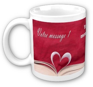 Mug personnalisable avec deux livres dont les feuilles forment des coeurs. Passe au four micro-ondes et au lave-vaisselle sans problèmes.