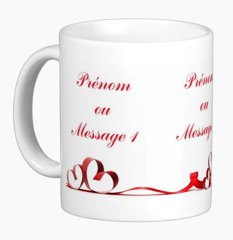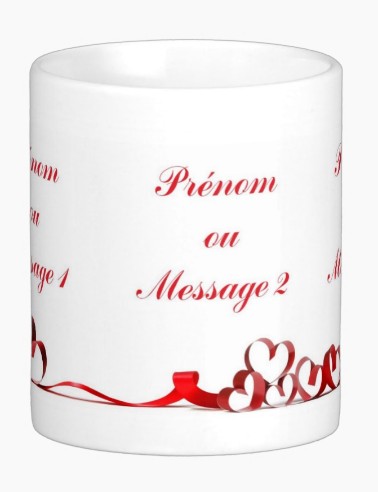 Mug personnalisable avec design artistique d'un ruban rouge en forme de cœurs.