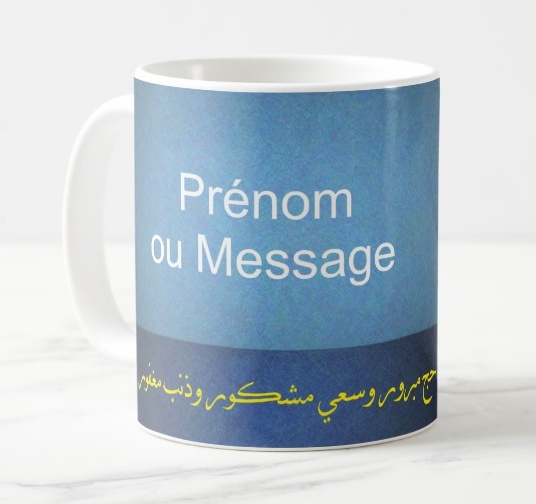 Mug personnalisé à offrir aux pèlerins (Hadj/Hadja) avec 2 messages ou prénom et invocation - حج مبرور وسعي مشكور وذنب مغفور - REF. 24525 (9.90 €) |
