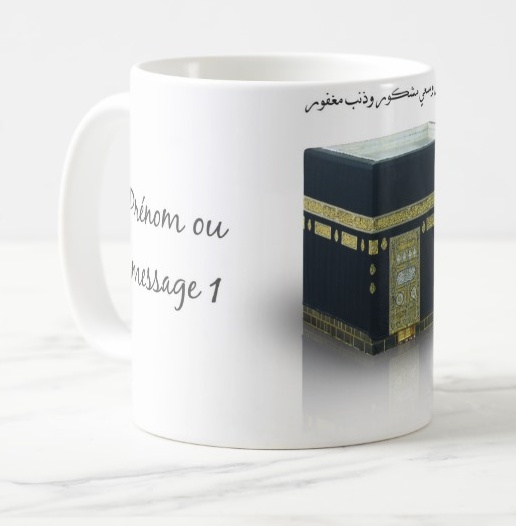 Mug personnalisé à offrir aux pèlerins 2025 (Haj/Haja) avec 2 messages ou prénom et invocation du pèlerin - REF. 24526 (9.90 €) |