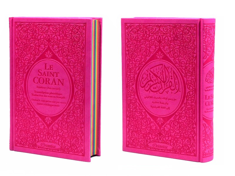 Le Saint Coran Rainbow Arc-en-ciel - Français-arabe avec transcription phonétique - Edition de luxe couverture Cuir Rose - REF. 26989 (29.00 €)