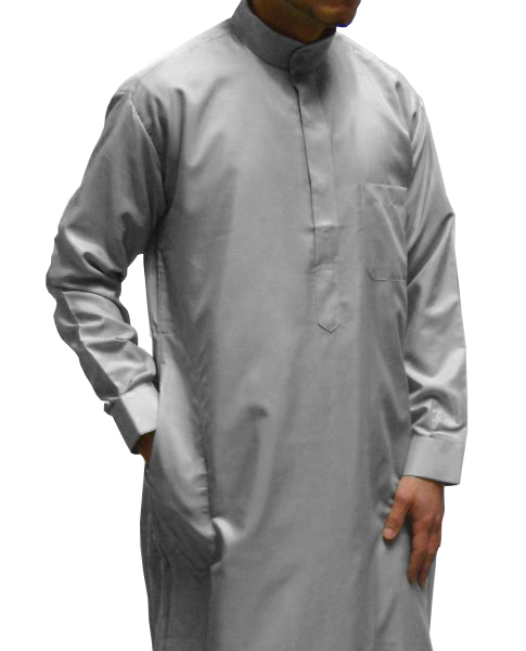 Qamis léger et agréable à mettre de couleur gris et Beige avec 3 poches.
