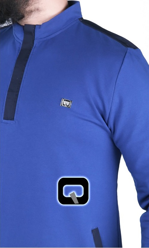 Qamis court Premium en coton molletonné bicolore boutons pression de Marque Best Ummah - Couleur Bleu marine et bleu - REF. 36725 (39.90 €)