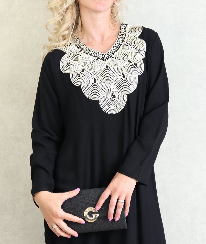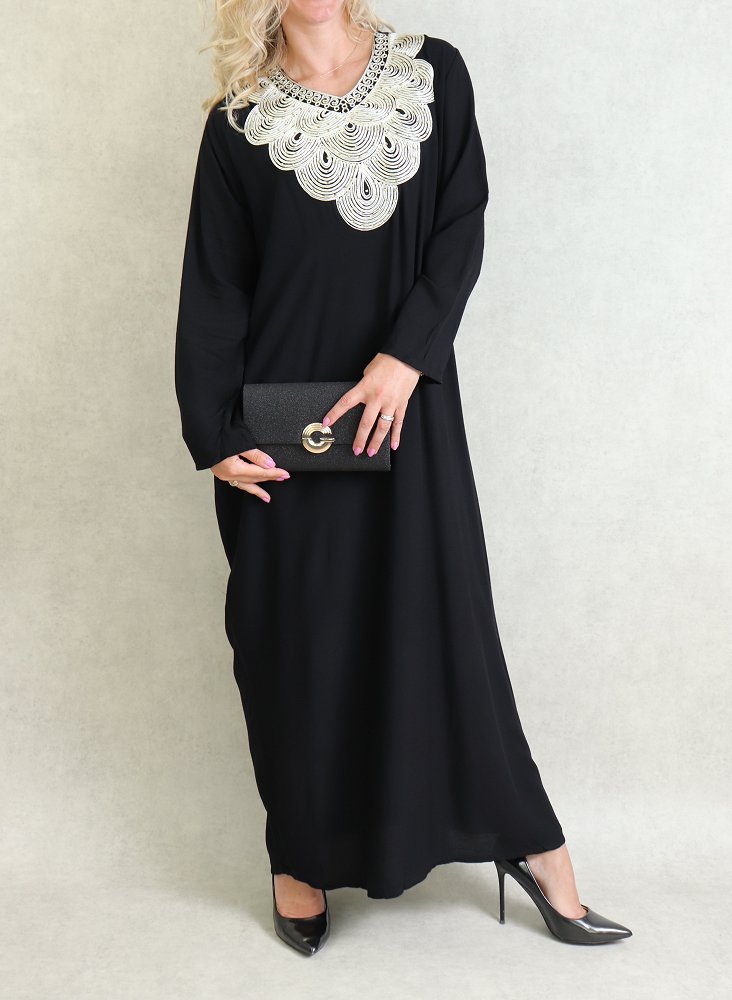 Robe orientale longue avec broderies - Manches longues - Couleur Noir Vetement & Accessoire