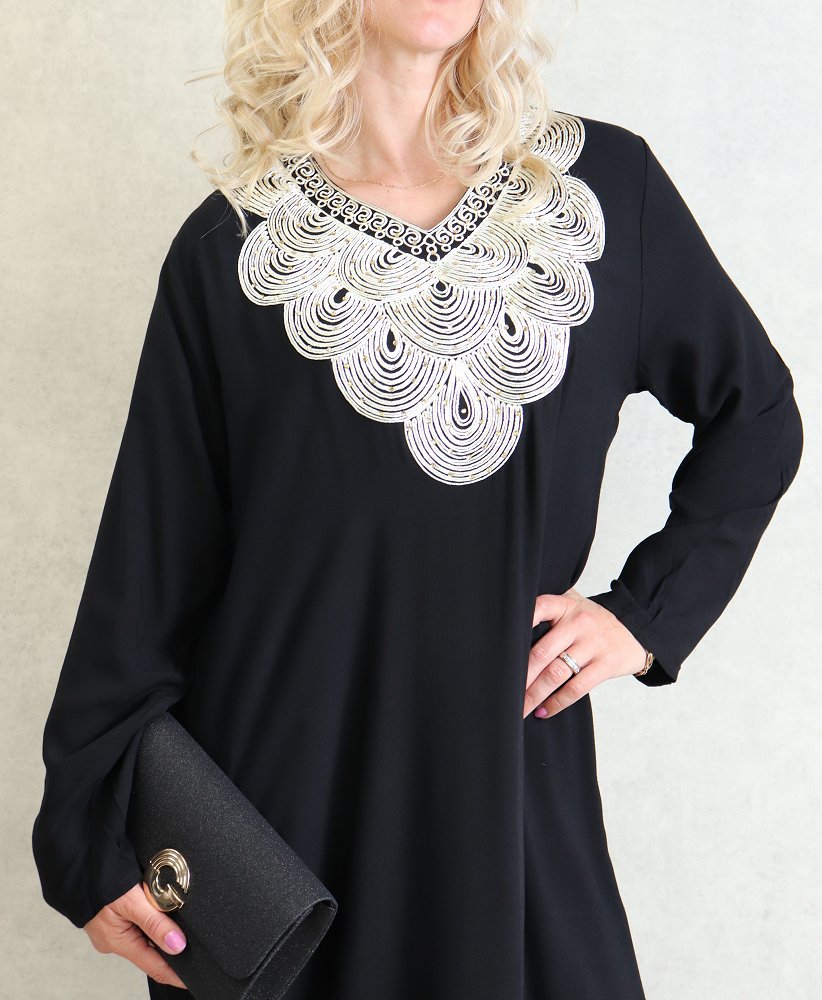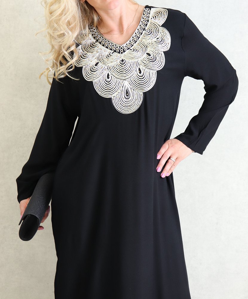 Robe longue pour femme avec broderies sur le devant et les manches - Couleur noir - REF. 38862 (29.00 €)