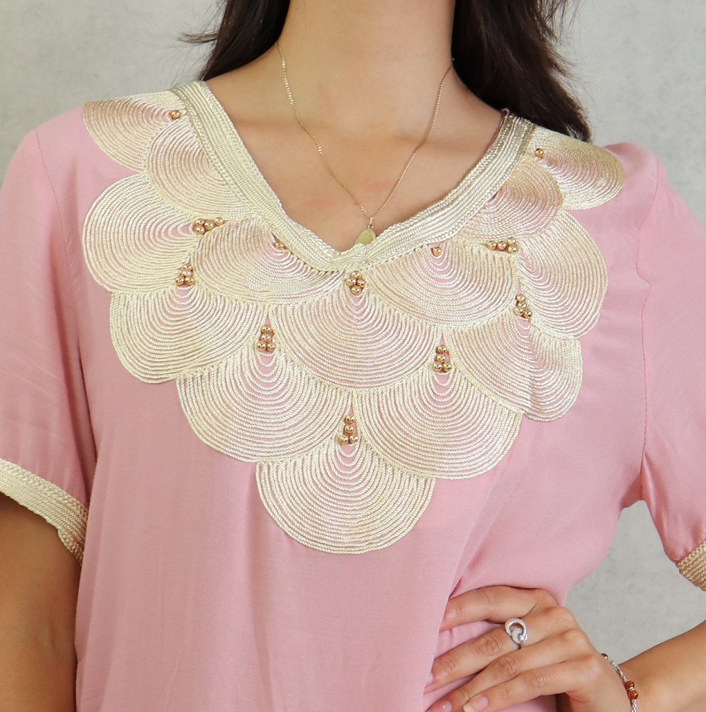 Robe tunisienne manches courtes avec broderies - Couleur Vieux Rose - REF. 31633 (26.00 €)