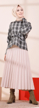 Chemisier à carreaux (Tenue Hijab Chic) - Couleur noir blanc et kaki - REF. 35654 (19.90 €)