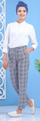 Pantalon à carreaux avec plis pour femme - Couleur Bleu - REF. 30808 (19.90 €)