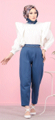 Ensemble Pantalon Palazzo ample et Blouse avec collier assorti (Tenue Mastoura pour femme voilée) - Couleur crème et rouille - REF. 32870 (19.90 €)