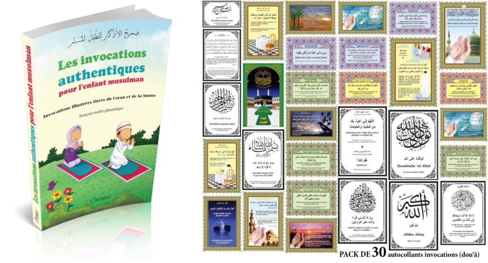 Pack de 30 autocollants d'invocations (Stickers français - arabe - phonétique) + Livre "Les invocations authentiques pour l'enfant musulman" Livre